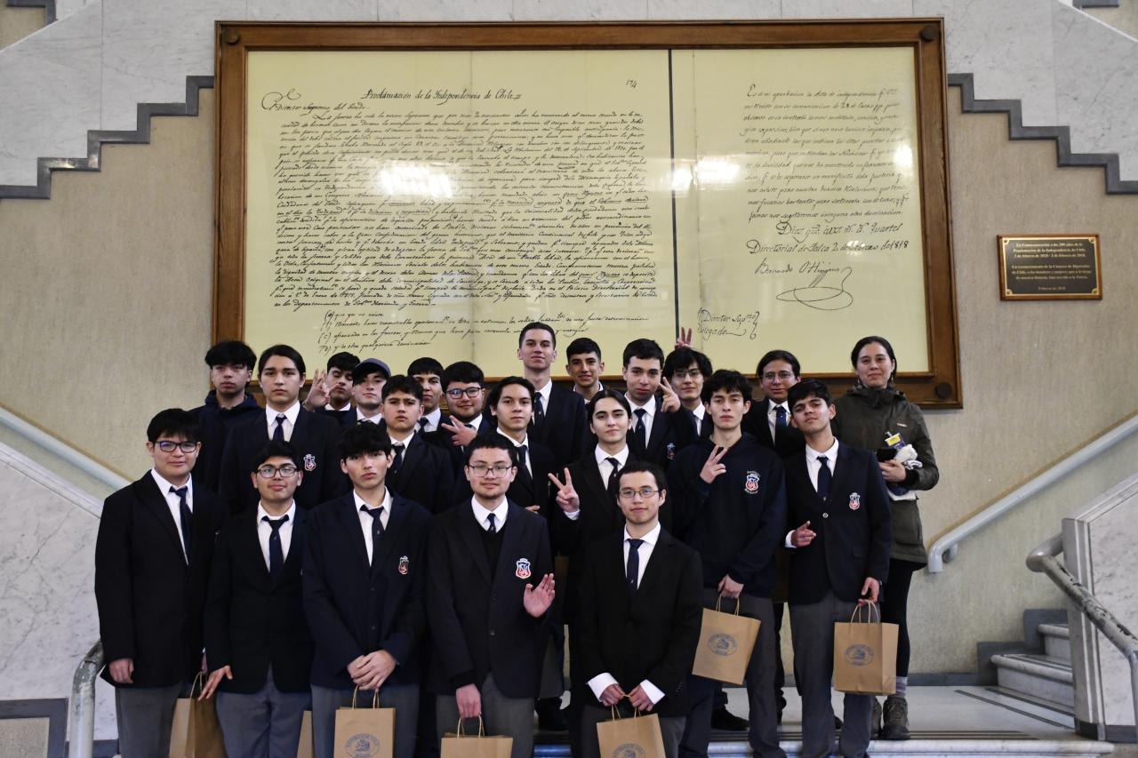 Delegación invitada por el senador Iván Flores, compuesta por estudiantes de 4° K del Instituto Nacional.